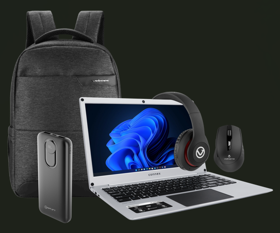 The Connex 14″ Celeron 4GB/128GB SSD Starter Bundle (often model SL128) is an entry-level, budget friendly notebook package running Windows 11 Home. It features an Intel Celeron N4020C processor, 14.1″ HD display, 4GB RAM, and a 128GB SSD, ideal for light tasks, students, and basic office work. The bundle includes a Volkano laptop backpack, wireless mouse, Bluetooth headphones, and a power bank.