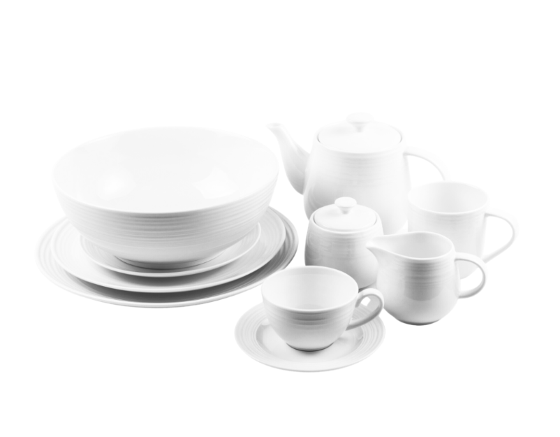 Jenna Clifford Embossed lines whisper white dinner set- 12 piece